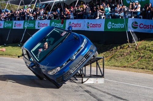 Bergsig Special School was tasked with adapting a VW Polo and manufacture some metal ramp stands for Terry Grant to use at Simola Hill Climb in Knysna where Grant would attempt to drive the Polo from the start to the top of the hill during the lunch break at the Hill Climb on just two wheels as well as manufacture other stands and ramps that would be used in a film shoot on the M4 freeway and in the harbour area. In a rear-wheel vehicle it’s a simple matter of welding the differential together but due to the VW Polo being a front-wheel drive vehicle it required special attention to detail to get both front wheels locked together. The first practice session was a short run that took place in the parking lot at the hotel in Knysna on the Friday night of the Simola weekend to the delight of the curious crowd that had gathered. During Saturdays attempt up the hill Grant got as far as turn three on two wheels before the electronic safety features in the car forced it into limp mode reducing power from the engine.